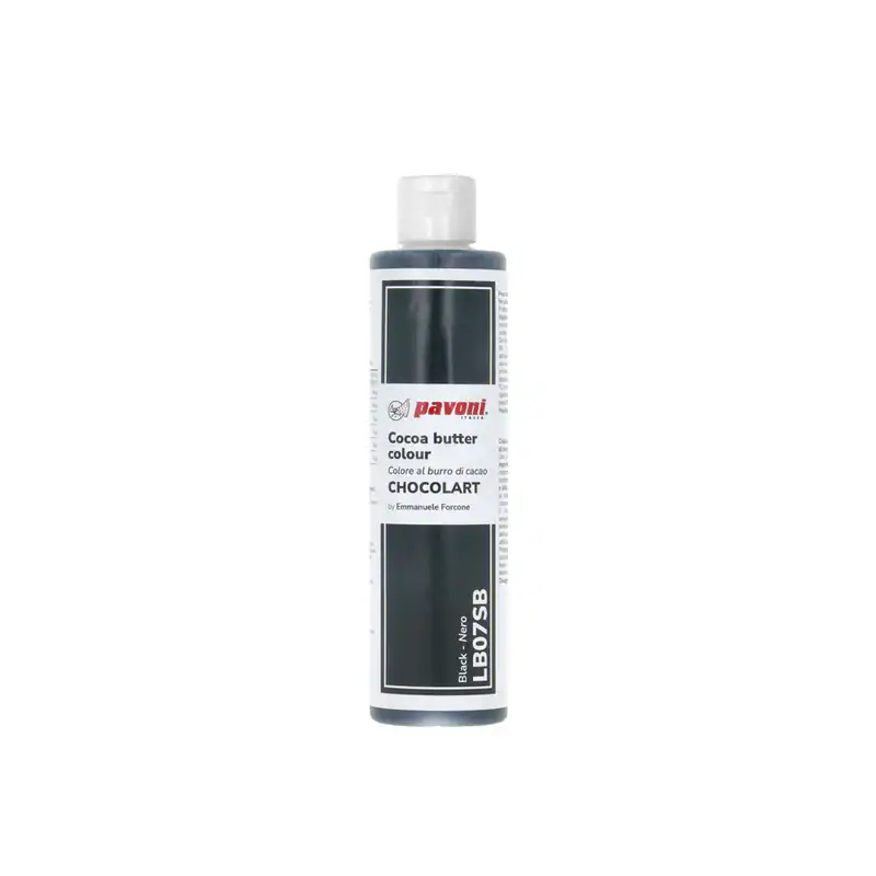 Description Cocoa butter colors CHOCOLARTCocoa butter based colours ready to use with a perfect colour dosage. Ideal for colouring chocolate in the mass, surface and mould.Color: BlackWeight: 200gE171 free