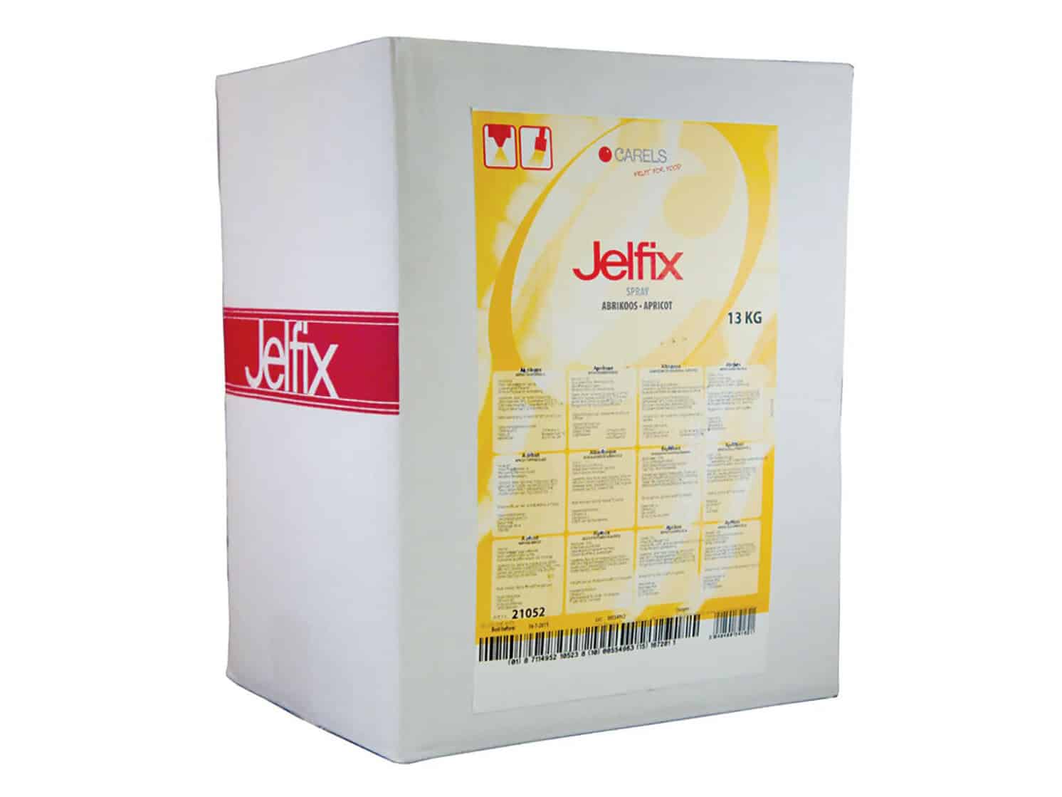 Jelfix Spray Glaze can be used in glaze spray machines. No need to add water. Pour the glaze out of the bag-in-box container and heat to 175°-185°F (80° – 85°C). Do not boil. Product dries rapidly.